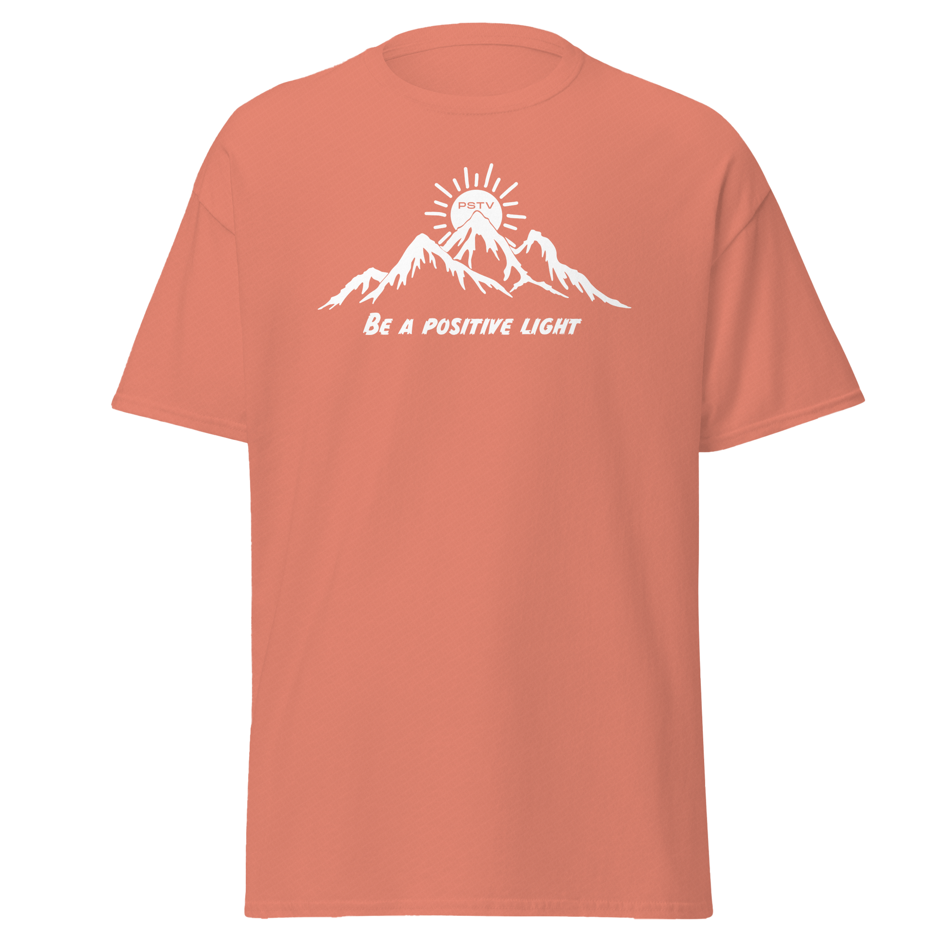 Introducing the "Positive Light" T-Shirt - a classic and stylish way to represent PSTV Goods, the brand that promotes positivity, kindness, hard work, motivation, and faith.