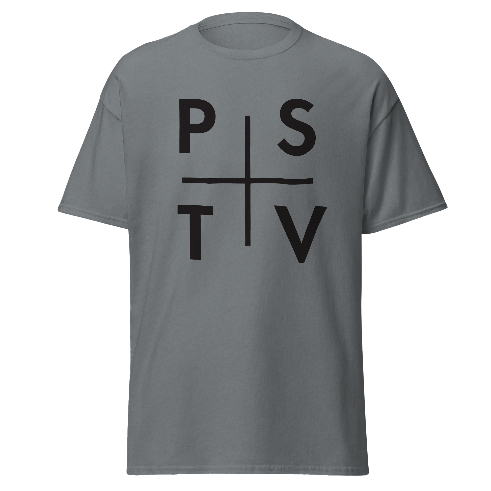Introducing the PSTV Classic T-Shirt - a classic and stylish way to represent PSTV Goods, the brand that promotes positivity, kindness, hard work, motivation, and faith.